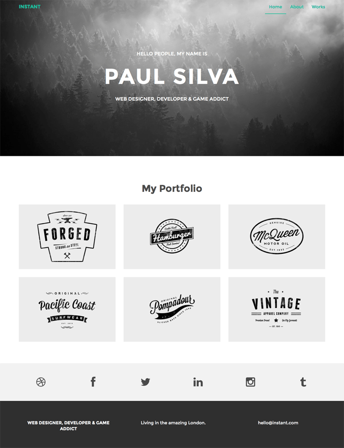 Instant is a 3 pages theme created specially for freelancers wanting to showcase their work with a nice and minimal style. Comes with an index/portfolio page, an about page and a project page. Easy to configure. Got your portfolio page in minutes.